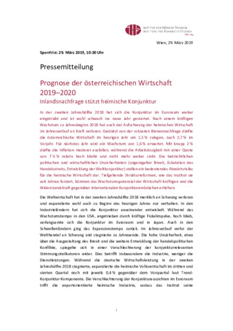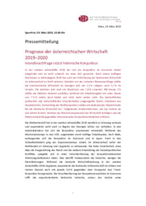 Prognose der österreichischen Wirtschaft 2019-2020: Inlandsnachfrage stützt heimische Konjunktur.