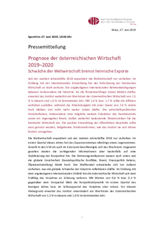 Prognose der österreichischen Wirtschaft 2019-2020: Schwäche der Weltwirtschaft bremst heimische Exporte.