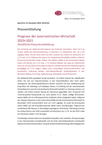 Prognose der österreichischen Wirtschaft 2019-2021: