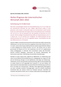 Herbst-Prognose der österreichischen Wirtschaft 2021–2022: