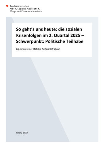 So geht’s uns heute: die sozialen Krisenfolgen im 2. Quartal 2025 – Schwerpunkt: Politische Teilhabe. Ergebnisse einer Statistik-Austria-Befragung.