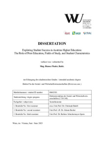 This thesis investigates what shapes students’ success in Austrian higher education. It is partic-ularly concerned with the impact of prior education, differences across fields of study, and individual characteristics that may indicate social inequalities. This objective is approached through a socio-economic and sociological lens by using a mixed method approach, including analyses of register data, survey data, and narrative interviews.
