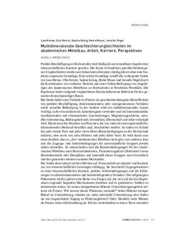 Der Beitrag umfasst eine Rezension zum Band "Multidimensionale Geschlechterungleichheiten im akademischen Mittelbau: Arbeit, Karriere, Perspektiven", der auf prekäre Beschäftigung im Hochschulbereich fokussiert.