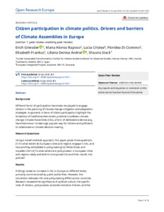 Citizen participation in climate politics. Drivers and barriers of Climate Assemblies in Europe.