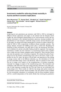 Investments needed for achieving climate neutrality in Austria and their economic implications.