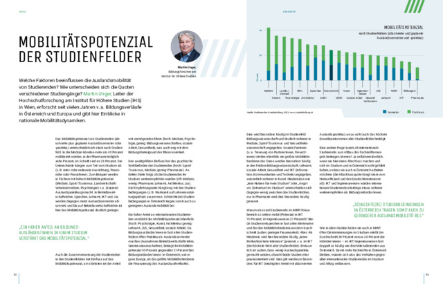 Welche Faktoren beeinflussen die Auslandsmobilität von Studierenden? Wie unterscheiden sich die Quoten verschiedener Studiengänge? Martin Unger, Leiter der Hochschulforschung am Institut für Höhere Studien (IHS) in Wien, erforscht seit vielen Jahren v. a. Bildungsverläufe in Österreich und Europa und gibt hier Einblicke in nationale Mobilitätsdynamiken.