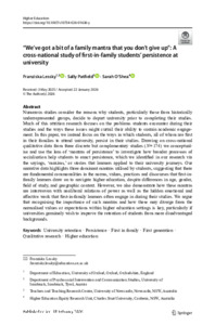 “We’ve got a bit of a family mantra that you don’t give up”: A cross-national study of first-in-family students’ persistence at university.
